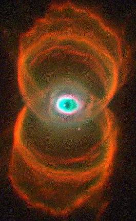 Believe it or not, the inspiration for the flag design came before the HST image below was made public. It is a photograph of the bipolar planetary nebula MyCn18, or the "Hourglass". Notice the intersecting rings and the "eye" in the middle, all of which have a striking resemblance to the above flag design. To the members of TLC, this is just another witness (apart from the spiritual one) that God is aware of their actions and sanctions the same.